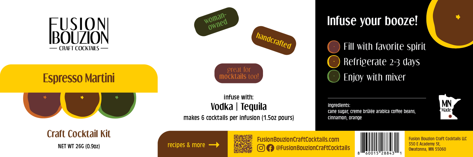 Espresso martini, where coffee meets cocktail hour! This sophisticated kit infuses vodka with vanilla arabica coffee beans and notes of orange, balanced with just the right touch of sweetness. The result? A drink that's equal parts pick-me-up and indulgence—smooth, slightly sweet, and undeniably elegant. Whether you're winding down an evening or need a refined energy boost, this classic delivers the best of both worlds!